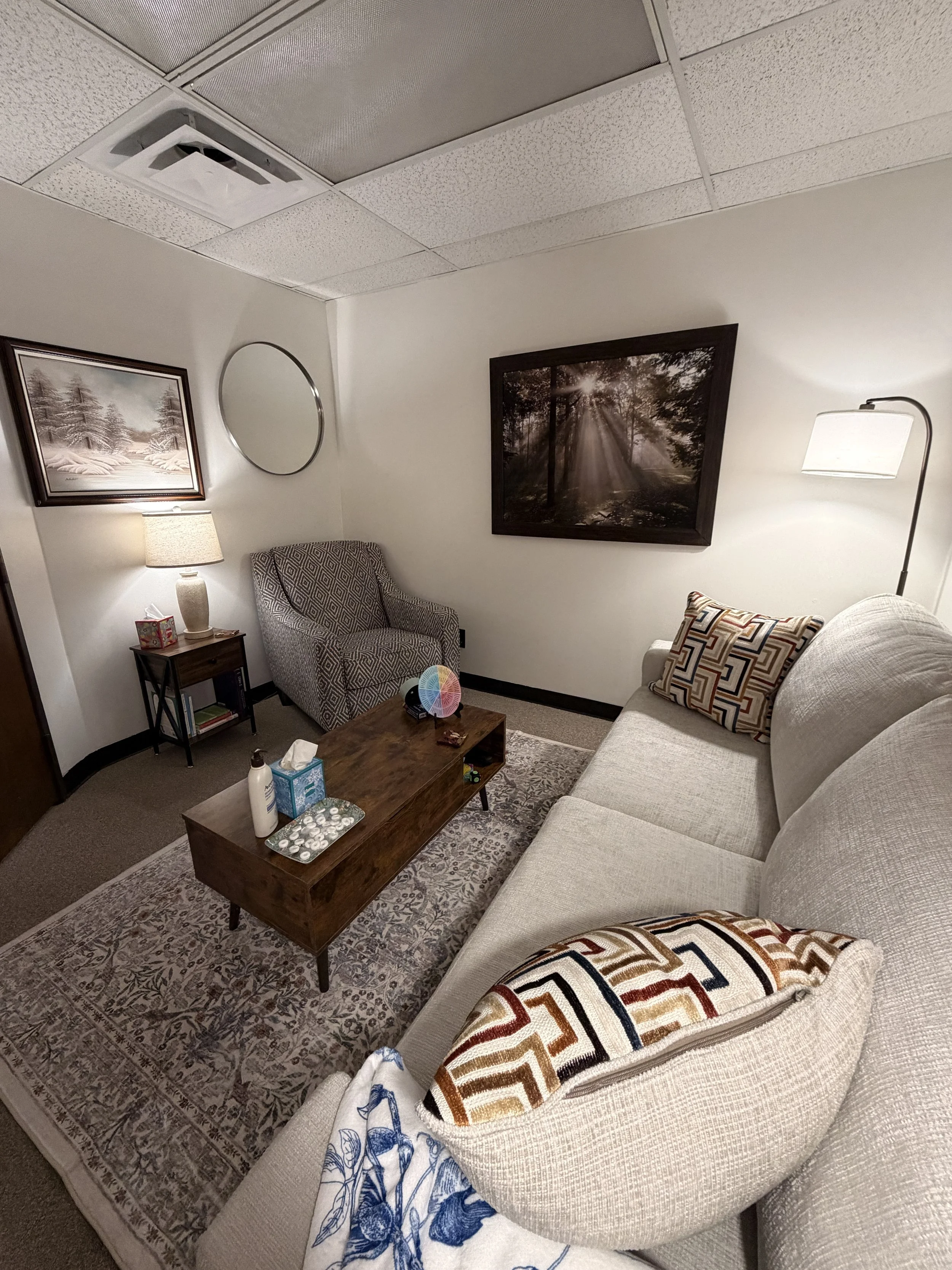 I offer in-person counseling located in Bloomington, Indiana in a calm, welcoming space. I also offer a HIPAA-compliant telehealth option for clients located throughout Indiana.